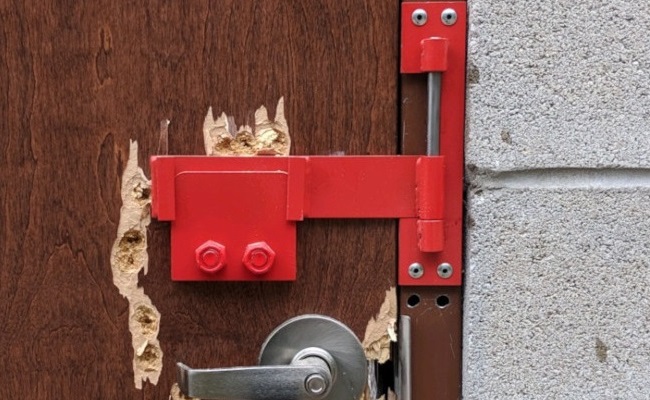 The Door Barrier Lock was designed to withstand the incredible forces that could be applied during an active shooter situation or someone looking to due grave harm to others. The lock had to work quickly, and it had to hold up to extreme conditions using a multitude of different weapons. The lock was tested to these standards.